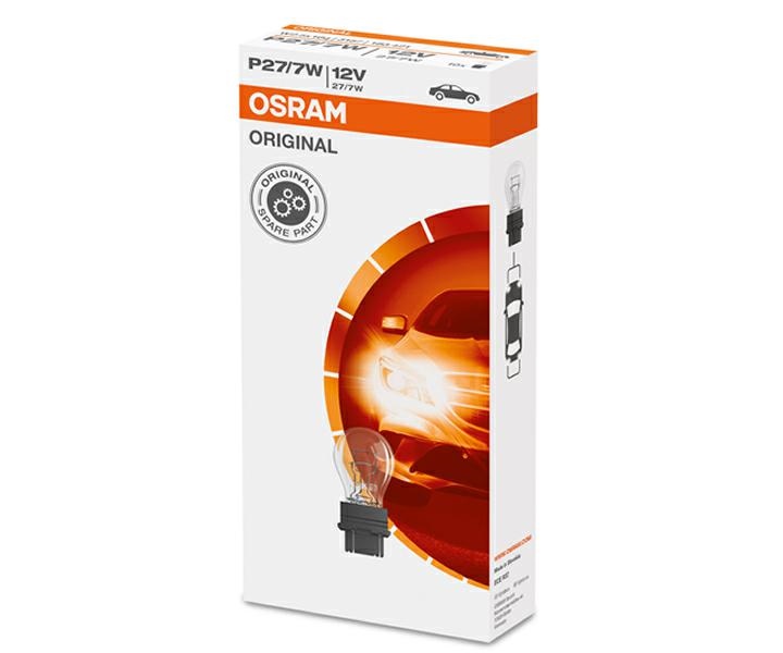Lampada ausiliaria con attacco in plastica P27/7W 12V 27/7W per luci di segnalazione di vario tipo su autoveicoli di varie marche. Le lampade Osram 3157 hanno una potenza luminosa di 402 lumen, un attacco del tipo W2.5x16q del diametro di 26,5mm una e una lunghezza di 53,3mm.